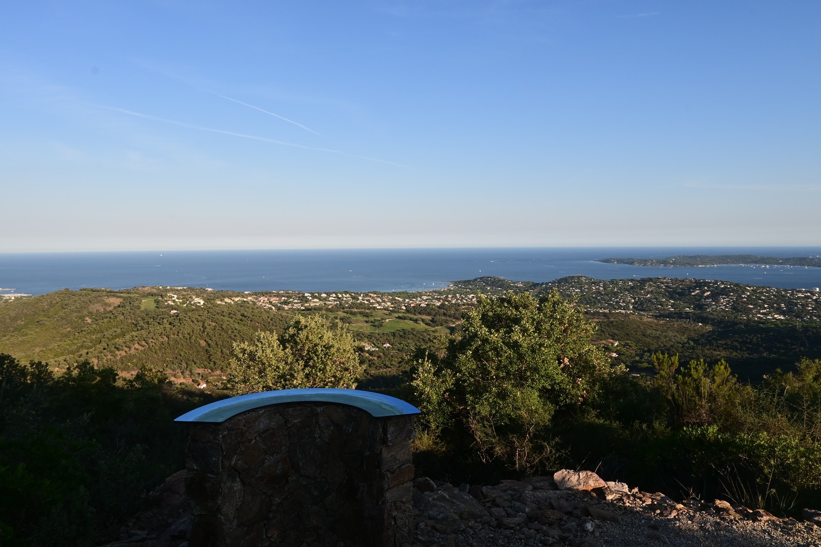 L'objectif ultime de cette randonnée est d'atteindre la table d'orientation qui vous offrira une vue dégagée et panoramique sur toute la baie du Golfe de Saint-Tropez. Vous pourrez également admirer l'arrière-pays varois et les majestueux sommets du Massif des Maures. C'est l'occasion parfaite pour prendre conscience de l'étendue et de la richesse de ce territoire côtier et terrestre. Vous vous retrouverez ainsi à la croisée de deux mondes, le littoral et l'arrière-pays, le tout dans une seule vue à 360 degrés.