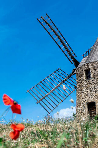 Venez découvrir l’intérieur d’un moulin à vent. Depuis le XVI e siècle, on connait l’existence d’un moulin à cet endroit. Abandonné au début du XXe siècle, ce moulin a retrouvé ses ailes, son mécanisme et sa toiture grâce aux compagnons du devoir.