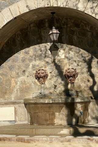 Cette fontaine, qui date probablement du XIX° siècle, était autrefois située au niveau de la petite terrasse qui jouxte le Café de l'Ormeau.