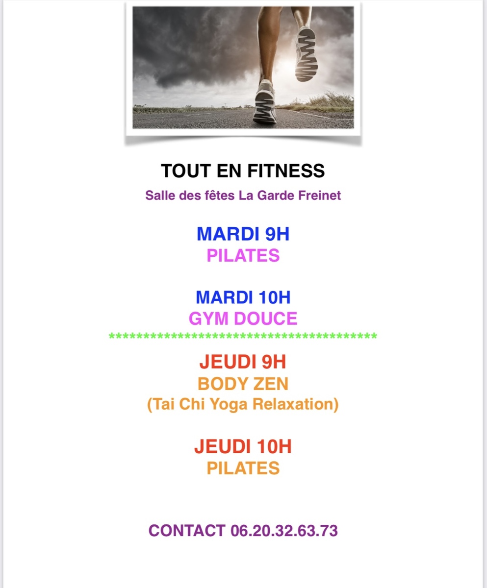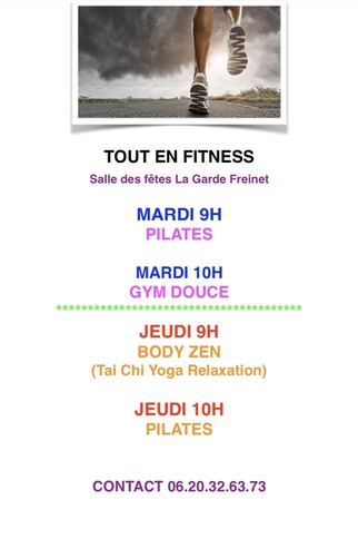 Mardi à 9h Pilates, 10 h Gym douceJeudi à 9h Body Zen, 10h Pilates
