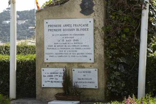 Dans le quartier de la Nartelle, une stèle a été aménagée au milieu d'un parterre de fleurs pour honorer la mémoire du 2e Régiment de Cuirassiers. Elle rappelle à jamais que, le 15 août 1944, ses chars furent les premiers à atteindre Sainte-Maxime.