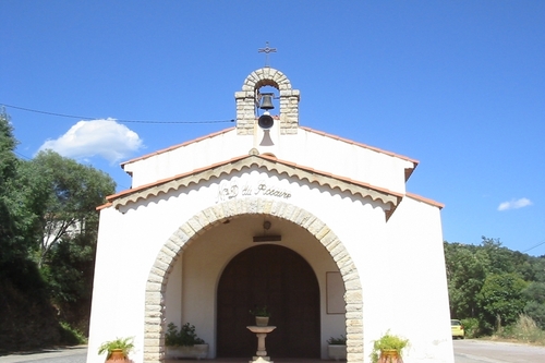 Cet édifice aux formes simples, de pur style provençal, entouré de cyprès, de pins et de chênes, surplombe la mer et la campagne. Il règne sur cette colline une quiétude et une harmonie rares.