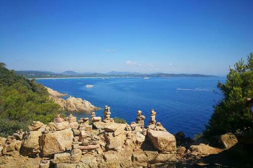 Vue sur les Îles d'Or depuis la table d'orientation deï Barri