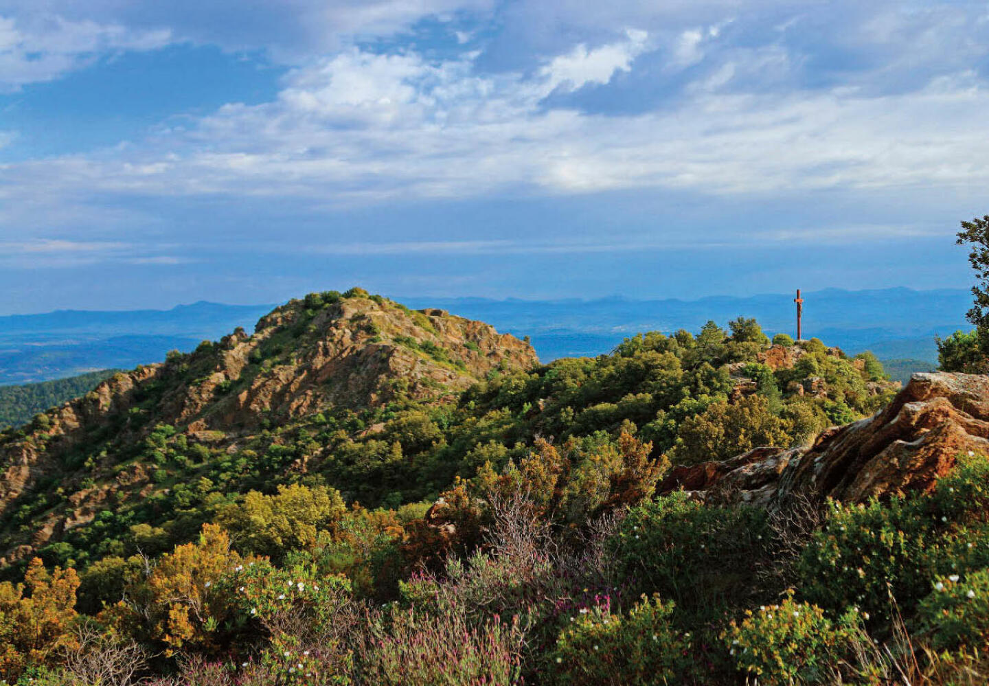 Pins, chênes-lièges, châtaigniers, oliviers, arbousiers, cistes, fougères, mimosas, genêts, bruyères… C'est une véritable “montagne en miniature" dont le nom provient de "Mauro" qui signifie "sombre" en provençal.