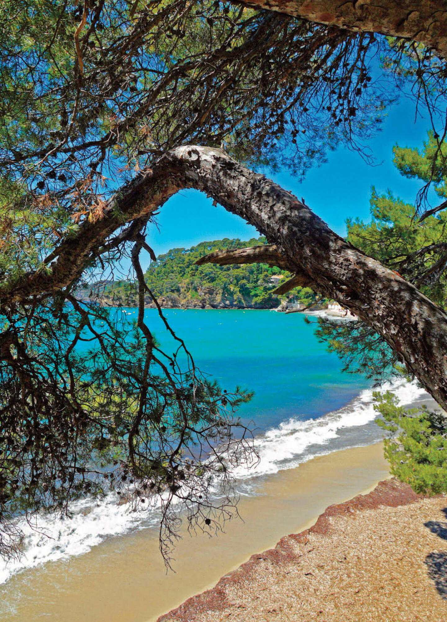 - Au pied de collines boisées, une longue et large plage de sable fin face aux îles d’Or avec juste le clapotis des vagues !