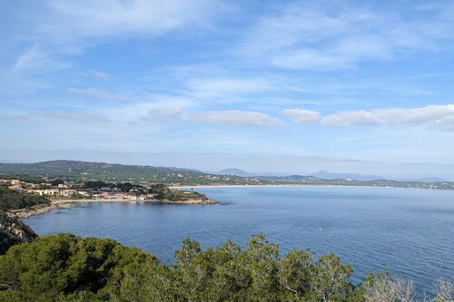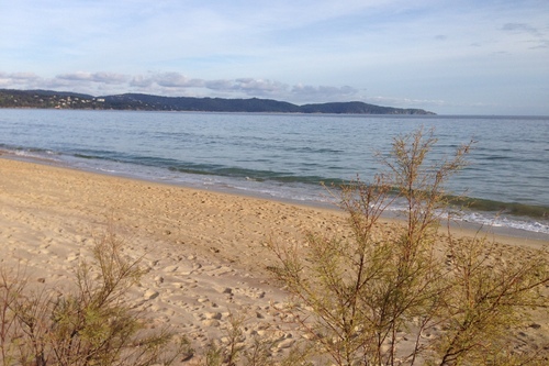 A la lisière entre Saint-Tropez et Gassin, large plage de sable face au massif des Maures, partagée entre établissements privés et littoral public.