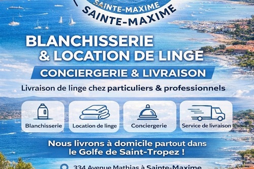 Service de blanchisserie, location de linge de maison, de puériculture et service de livraison