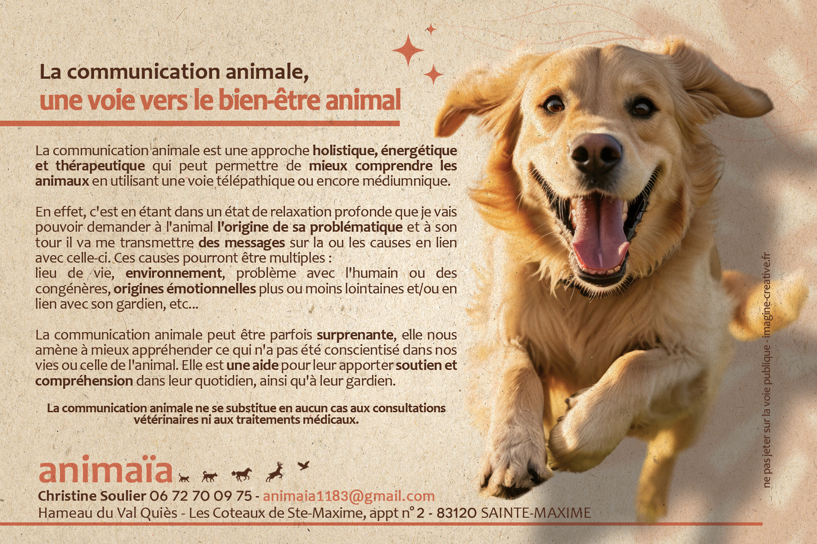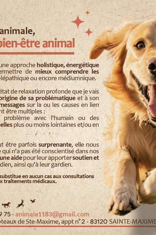 La communication animale est une approche énergétique et thérapeutique qui permet aux animaux d'être entendu et compris dans leur problématique, et ainsi cela les libère et les aide à se sentir plus épanouis. Soins énergétiques aux animaux