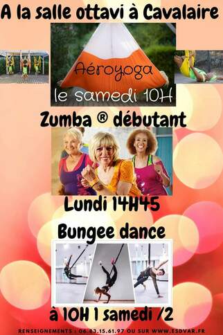 Marche nordique, Aéroyoga, kuduro'fit, Fitball, Ostéo-gym, Circuit nature, Zumba®, Bungee Dance, Jumping Fitness, Cerceau aérien, Stages fitnessSéances dynamiques et évolutives toute l'année.