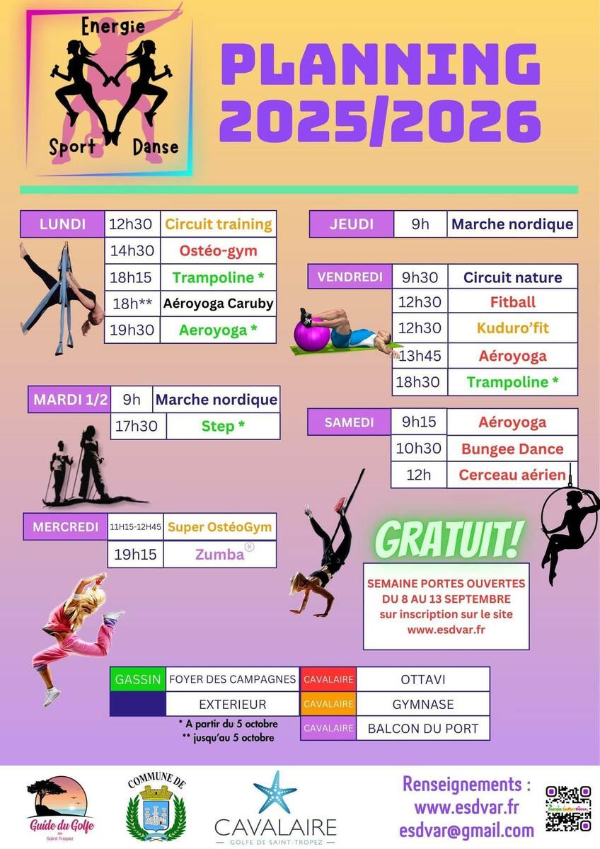 Pour l'année 2026, Énergie Sport et Danse vous propose une sélection de nouveaux cours, notamment la barre au sol, en complément des cours habituels. Ces nouveautés sont conçues pour enrichir votre programme et vous offrir une expérience encore plus complète."