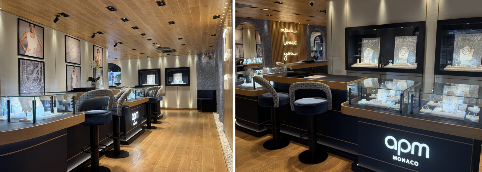La boutique APM Monaco de Saint-Tropez reflète parfaitement l’atmosphère chaleureuse et élégante de la ville. On y retrouve un décor épuré et lumineux, une présentation soignée des collections et un accueil personnalisé qui invite à prendre le temps de découvrir chaque création.