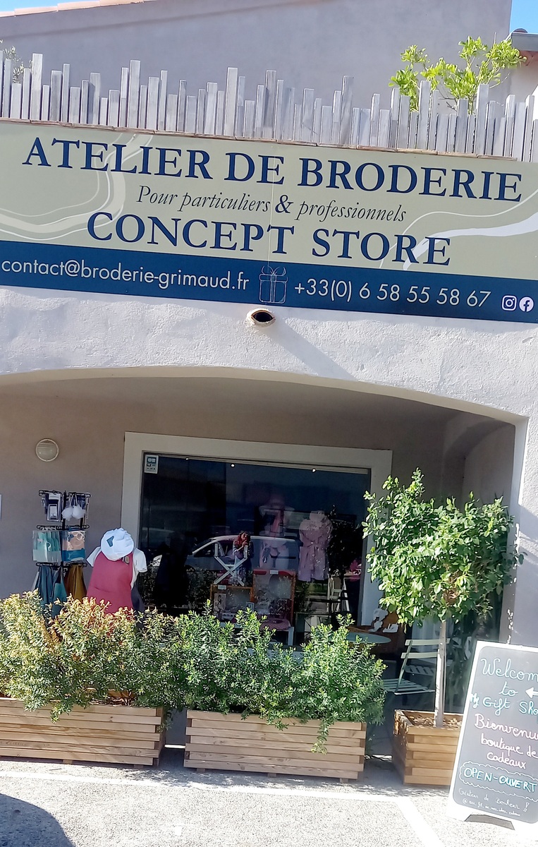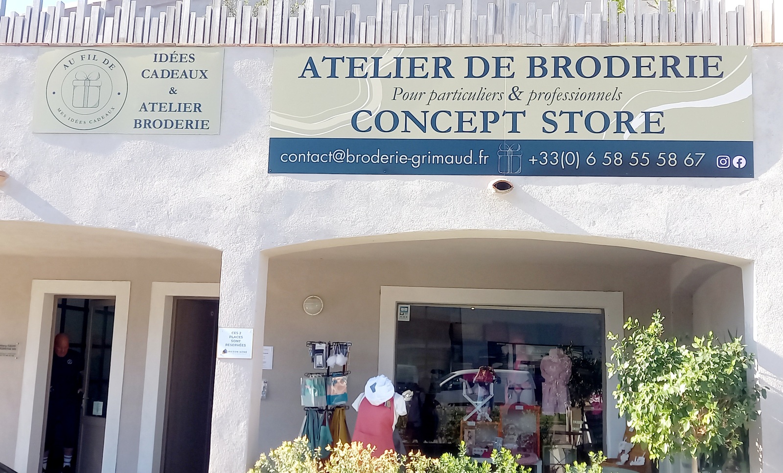 La Boutique pour réussir ses cadeaux avec atelier de Broderie est située dans la Zone Artisanale du Grand Pont, entre Grimaud et Port Grimaud, "Au fil de mes idées cadeaux" personnalise vos textiles en broderie et vous propose une large gamme d'accessoires et d'objets pour des idées cadeaux très originales.Bienvenue dans notre concept store, l’endroit idéal pour dénicher des petits cadeaux uniques et originaux personnalisables en broderie pour petits et grands !