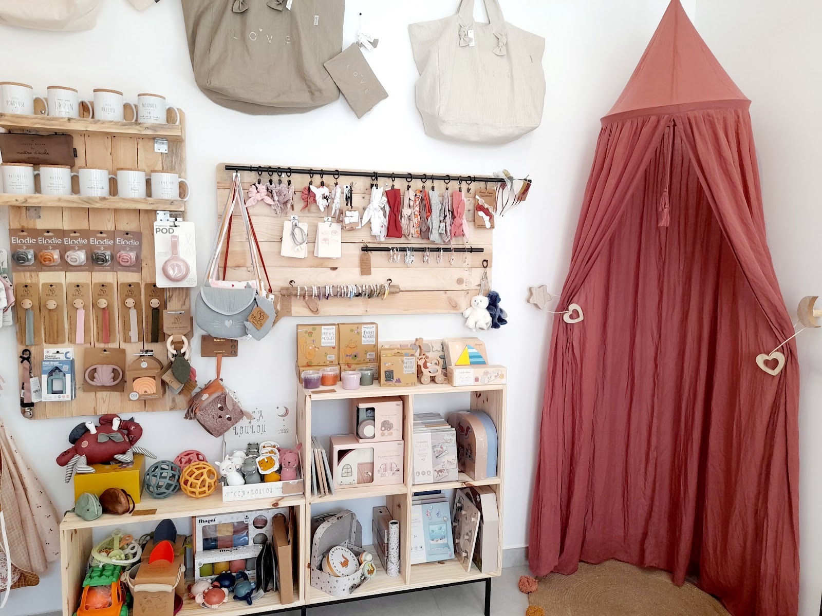 L'univers des bébés aux plus grands réuni dans un lieu chaleureux et douillet. Un concept store où se mêle vêtements, chaussures et jouets dans une jolie harmonie de couleurs.