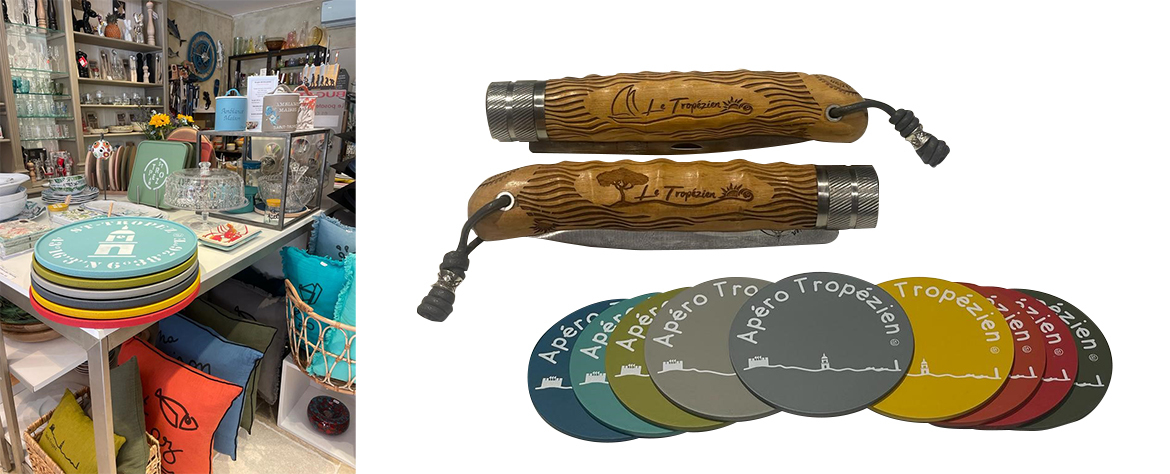 Des couteaux d’exception pour la table, la cuisine ou collectionneur. Coté Déco des idées cadeaux originales de fabrication française et toujours notre petit rayon quincaillerie pour vous dépanner. Laguiole, Opinel, Bugatti, Wusaki, Peugeot, Le Creuset, Caspari, Verres de BIOT, Poterie d’Anduze, Sophie Janière, J.Bonnamour, Sicard et en exclusivité notre couteau « Le Tropézien ».