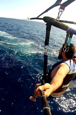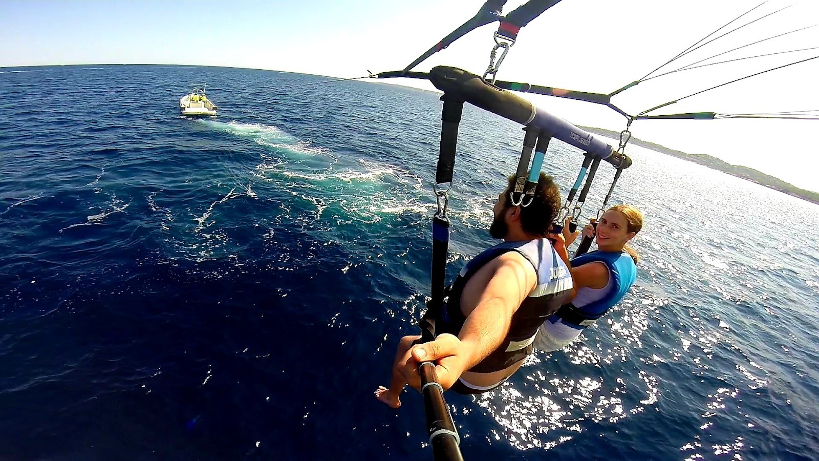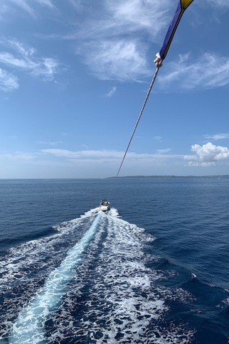 Accrochés à UN PARACHUTE ENTRAÎNÉ PAR LA VITESSE D'UN BATEAU, vous vivrez une expérience riche en sensations fortes.