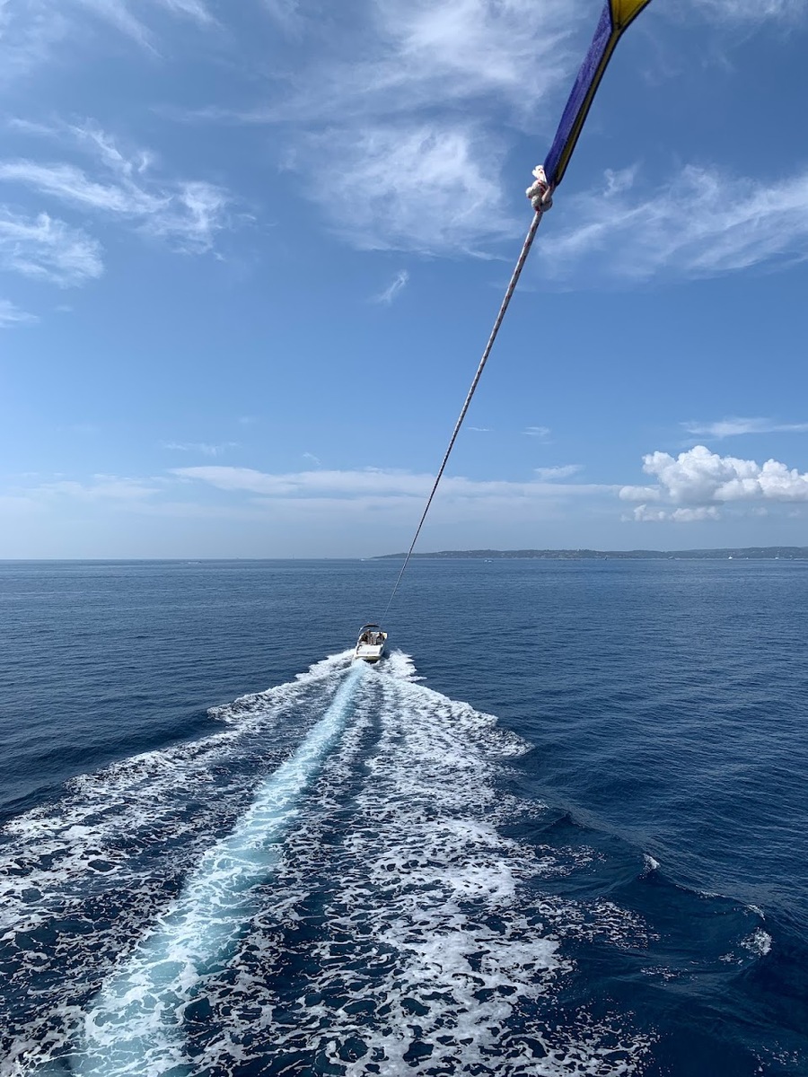 Envolez-vous seul, à 2, à 3, à 4 ou à 5 pour une VIRÉE PANORAMIQUE au dessus de Sainte-Maxime dans la baie du Golfe de Saint-Tropez.Accrochés à UN PARACHUTE ENTRAÎNÉ PAR LA VITESSE D'UN BATEAU, vous vivrez une expérience riche en sensations fortes.