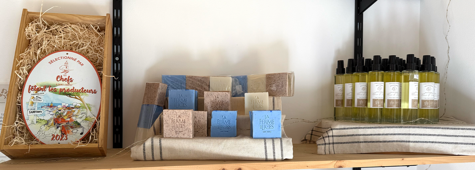 La Ferme des Lices, nichée dans un écrin de verdure, vous ouvre les portes de sa boutique pour vous faire découvrir des produits de petits producteurs ainsi que de l'huile d’olive vierge extra bio 100% Tropézienne, et du miel Bio & IGP.