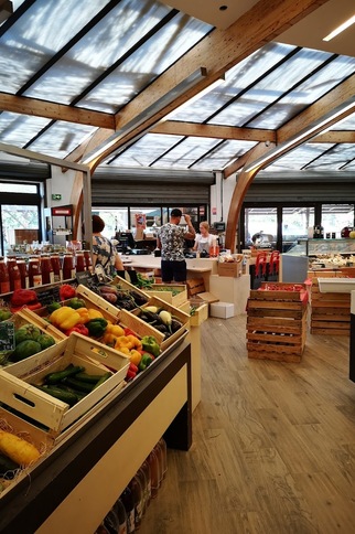 Nous sommes une épicerie bio & locale où nous proposons essentiellement des produits de notre région.Espace : fruits et légumes - boucherie charcuterie - laitage et fromage - oeufs de notre ferme - cave à vins .