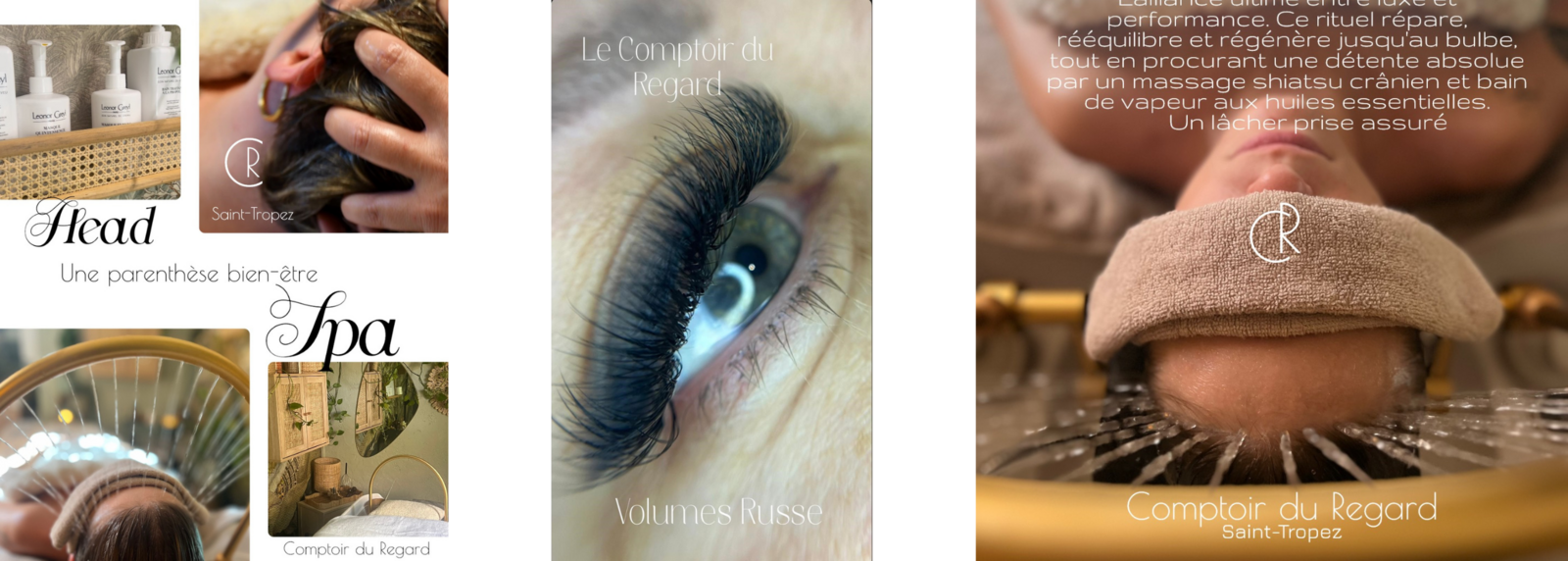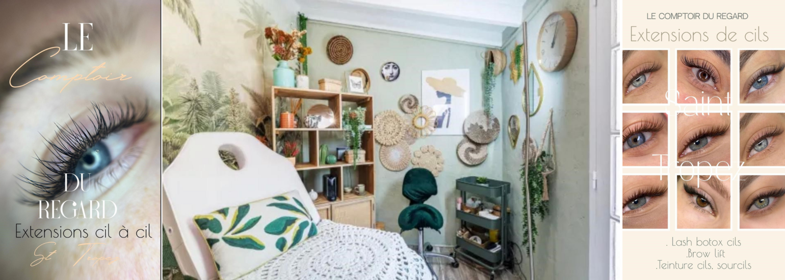 Le Comptoir Du Regard est un lieu dédié a votre beauté. Experte en Extensions de cils en soie, Spray Tanning, Maquillage Permanent, Lash botox, Brow lift, épilation visage, Head Spa, soin visage.