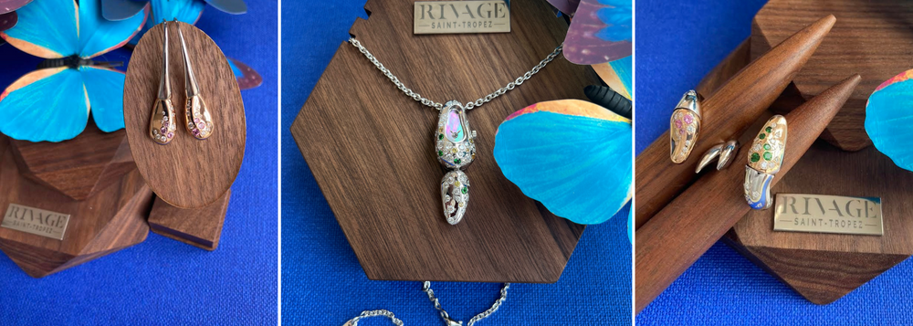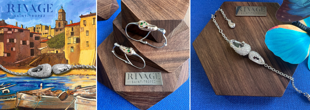 Saint Tropez a été longtemps la place où les modes et tendances naissaient. Ce village si riche en histoires et contes se doit de posséder un bijou typique.Après une carrière pour de grandes maisons de joaillerie, les créateurs de RIVAGE ont décidés de mettre en œuvre leur savoir-faire associé à leur passion pour le village et son histoire.