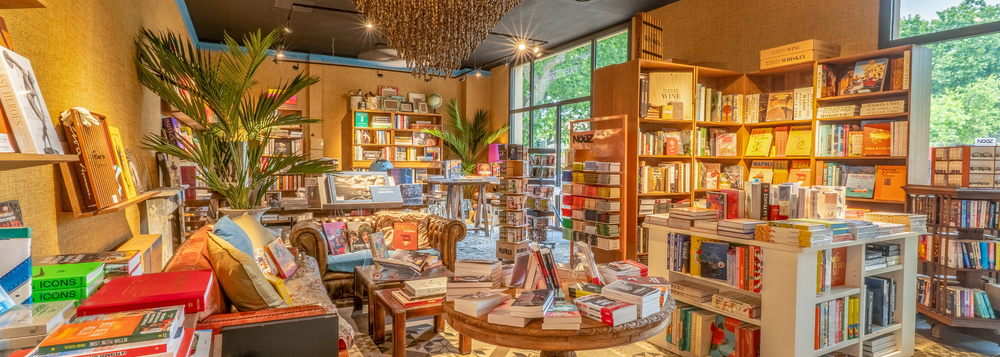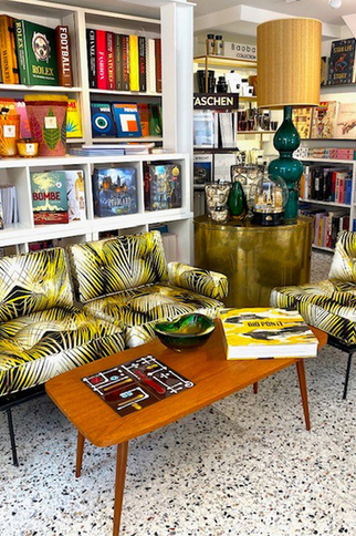 Meubles design et beaux objets se mêlent aux livres pour une ambiance inédite.