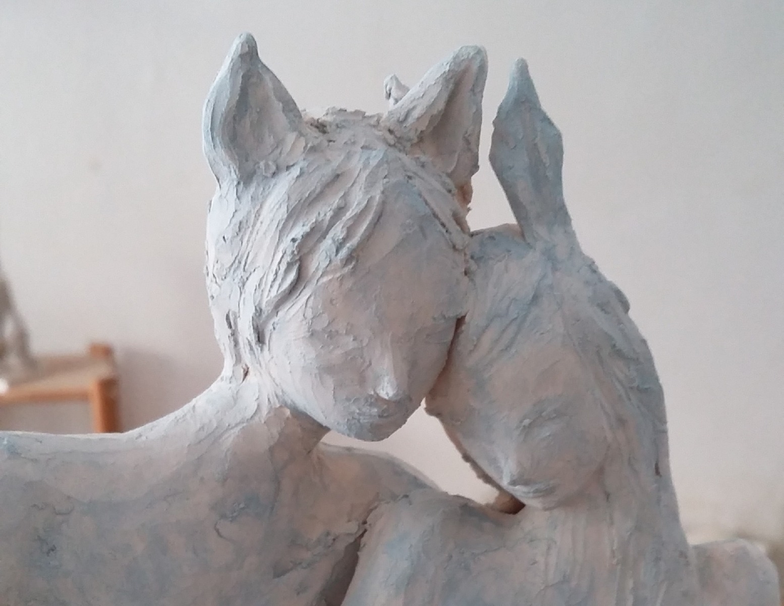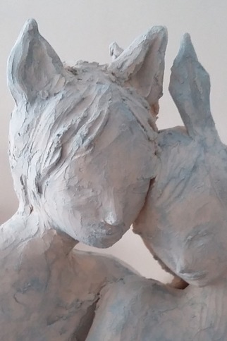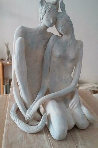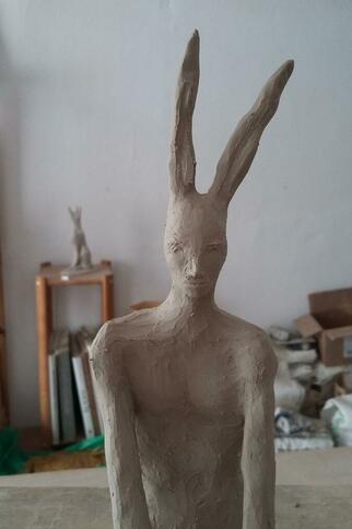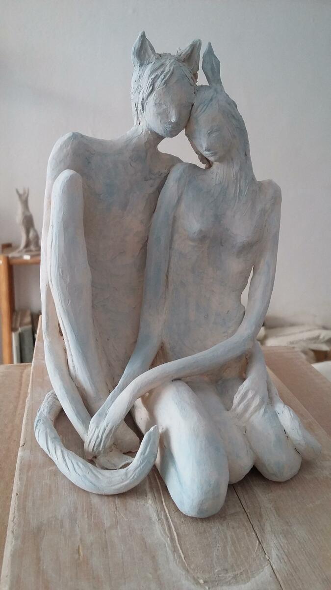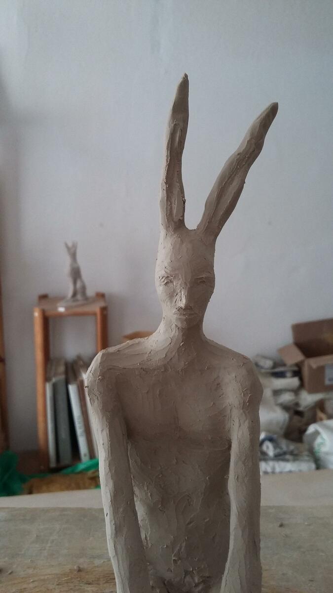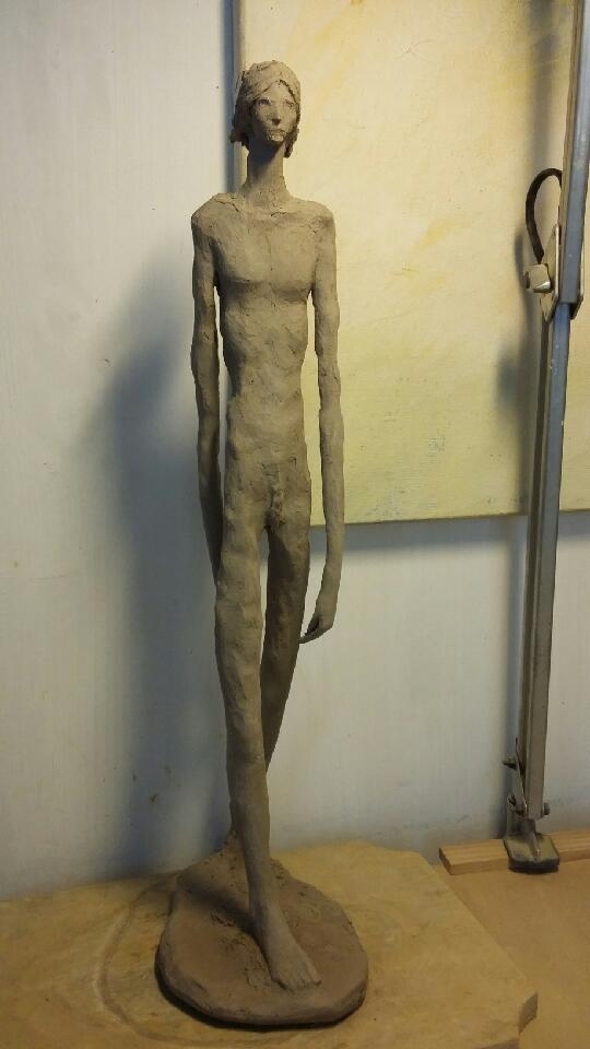 L'artiste expose dans son atelier son travail. Les sculptures sont en terre cuite patinée.