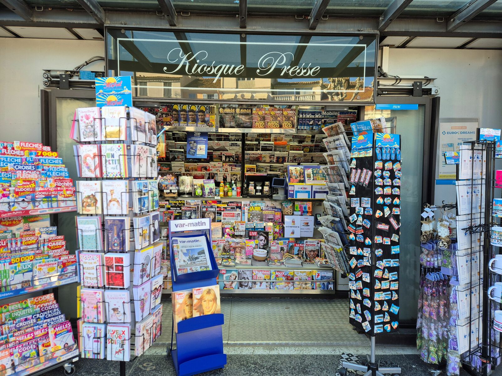 Votre kiosque de Sainte Maxime vous accueil le matin dés 7h pour votre presse un petit loto accompagné de ses jeux à gratter .vous y trouverez des boissons, des confiseries sans oublier le café à emporter ainsi qu'une gamme de glaces à emporter.