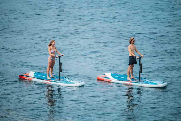 Sensation unique au rythme des vacances. Déplacez-vous sur l’eau aux commandes d’un paddle électrique, avec son guidon et grâce à sa grande dimension, le paddle est très stable et ne nécessite aucun niveau d’équilibre.