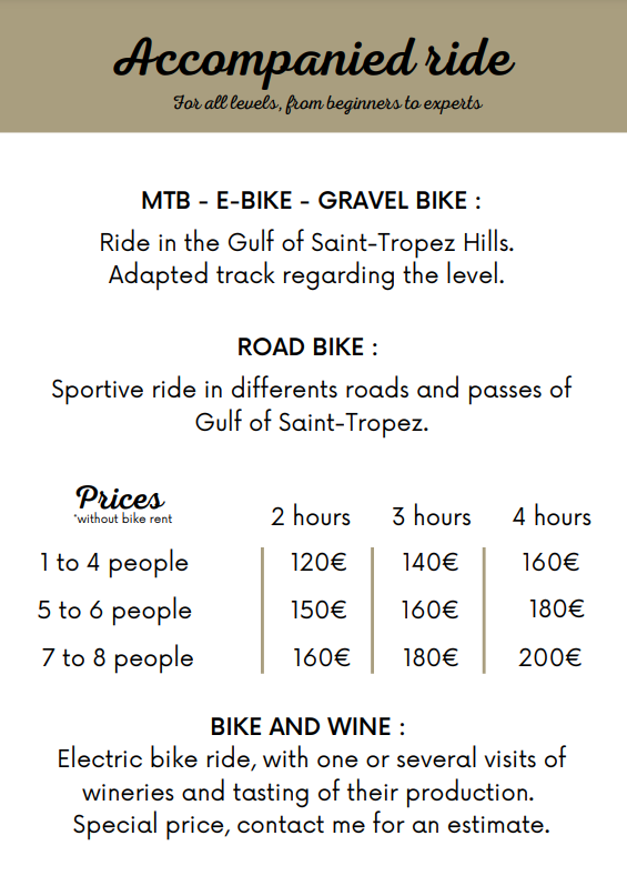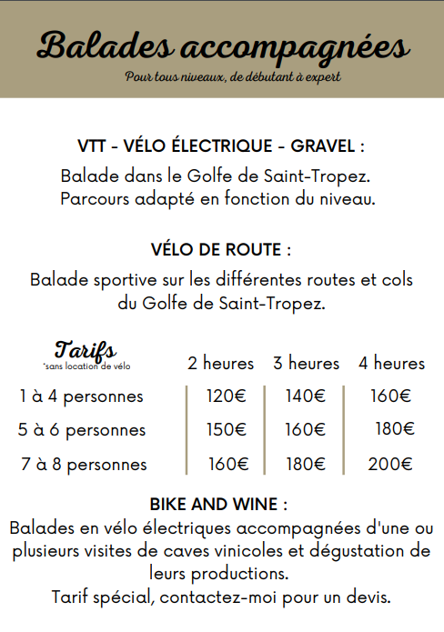 - Encadrement de balades touristiques à vélo (VTT électrique, Vélo de route, VTT, Gravel, bike and wine)