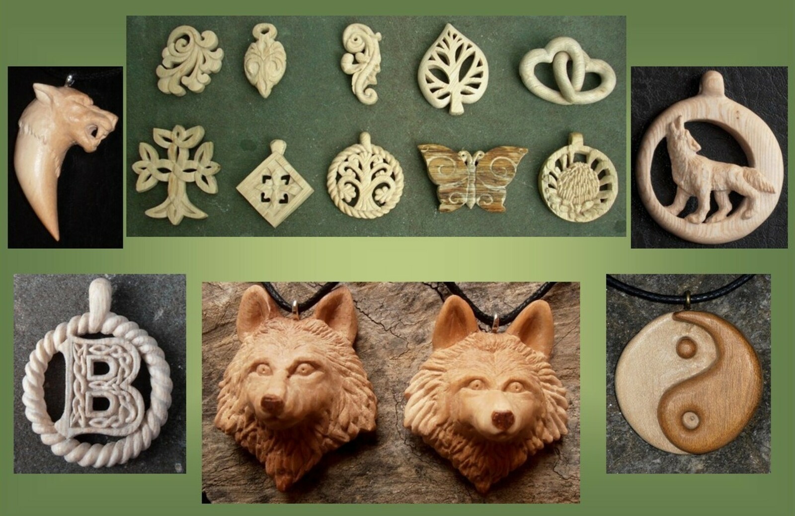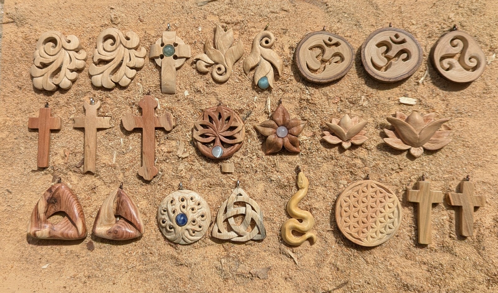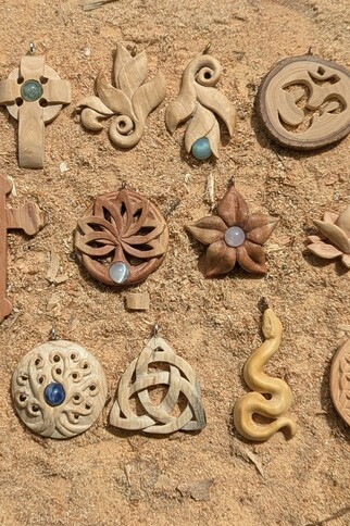Création de bijoux et petits objets en bois local et/ou de récupération, sculptés à la main. Réalisation possible sur commande.