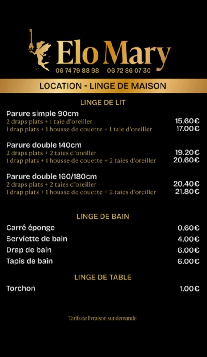 Nous pouvons nous occuper de votre linge de maison du lavage au repassage.Nous proposons également la location de draps et serviettes.
