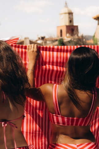 Nos modèles et nos imprimés sont conçus en France, à Saint-Tropez. Ils sont fabriqués à quelques heures du village, en Italie, nation du maillot de bain, dont le savoir-faire en la matière reste inégalable.