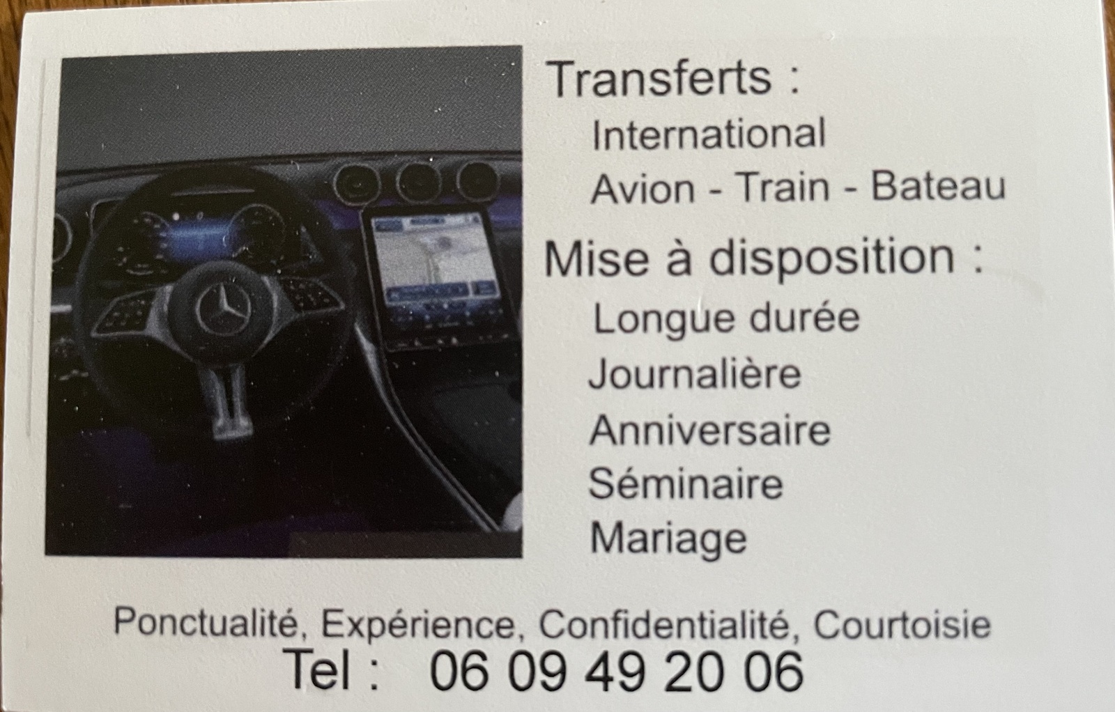 Possibilité de mise à disposition : longue durée, journalière, anniversaire, mariage, séminaire. Ponctualité, expérience, courtoisie, confidentialité.Votre chauffeur à l'écoute de sa clientèle et connaissant parfaitement la région.