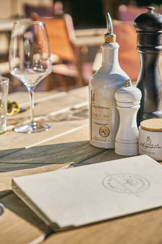 Chanceux de disposer d’un terroir riche et diversifié, le chef se nourrit des arrivages du jour pour élaborer une carte de suggestions riches en saveur et aux accents du sud. Poissons, langoustes, carpaccios, ceviches selon la pêche locale, assiettes du pêcheur, soupe de poissons ou la fameuse bouillabaisse préparée par Sophia. Les amateurs de viande apprécieront notre sélection de charolaise, Black Angus, et de foie gras. Vous vous régalerez également avec les incontournables de la carte comme les anchois frais marinés, les poivrons à l’huile, les sardines farcies au vert ou la salade «Ninette». Côté douceurs, la tarte tropézienne, les sorbets maison et les desserts sans sucre au Natsuc surprendront les plus gourmands. Natsuc, www.natsuc.com, un substitut de sucre d’écorce de bouleau, d’origine végétale et naturel offre un plaisir sans compromis pour votre santé. Ce sucre naturel sublime chaque dessert en apportant une touche de douceur saine. Parce que votre bien-être nous tient à coeur, nous faisons de chaque repas une expérience à la fois savoureuse et équilibrée.Sans oublier le vin de la propriété, « Clos Bellevue », fruit d’une vendange biodynamique, récoltée entièrement à la main, et l’huile d’olive du domaine, également issue du « Clos Bellevue ». Produite selon la tradition – olives récoltées avant maturité pour préserver un goût optimal, première pression à froid, non filtrée et décantée naturellement – cette huile est un trésor pour les connaisseurs.