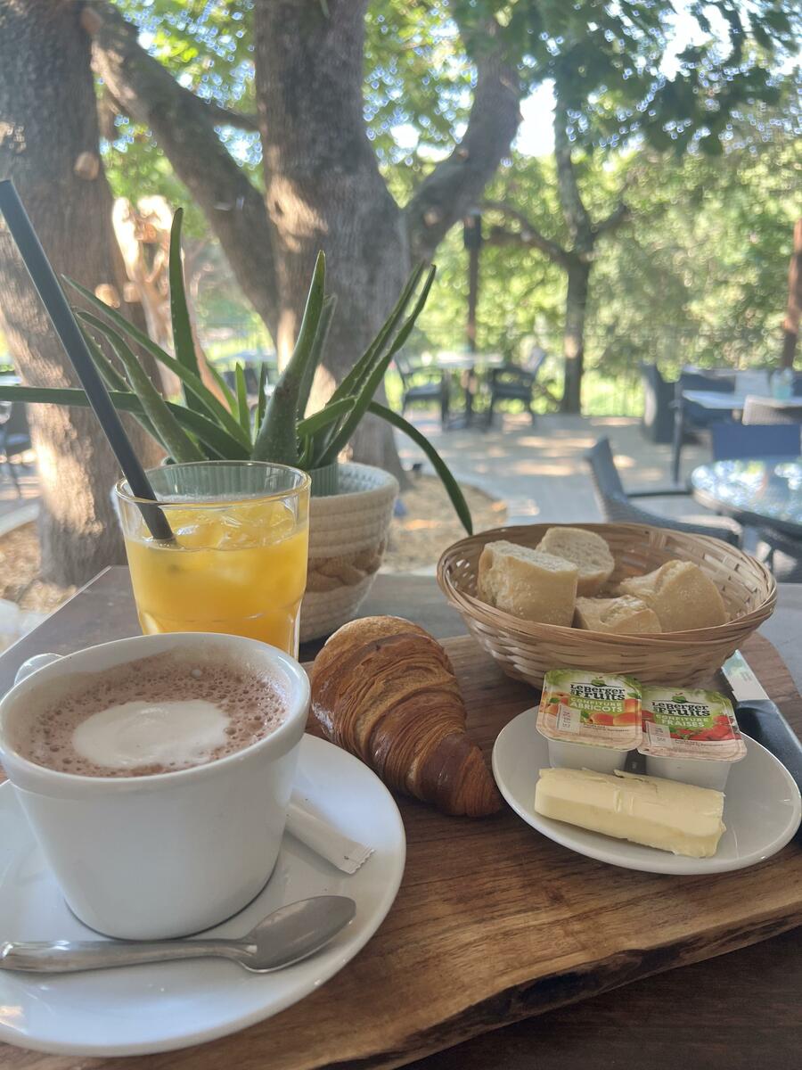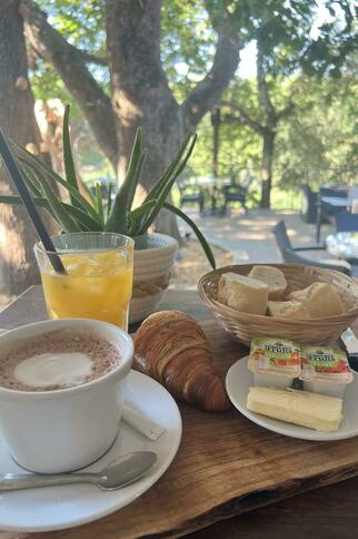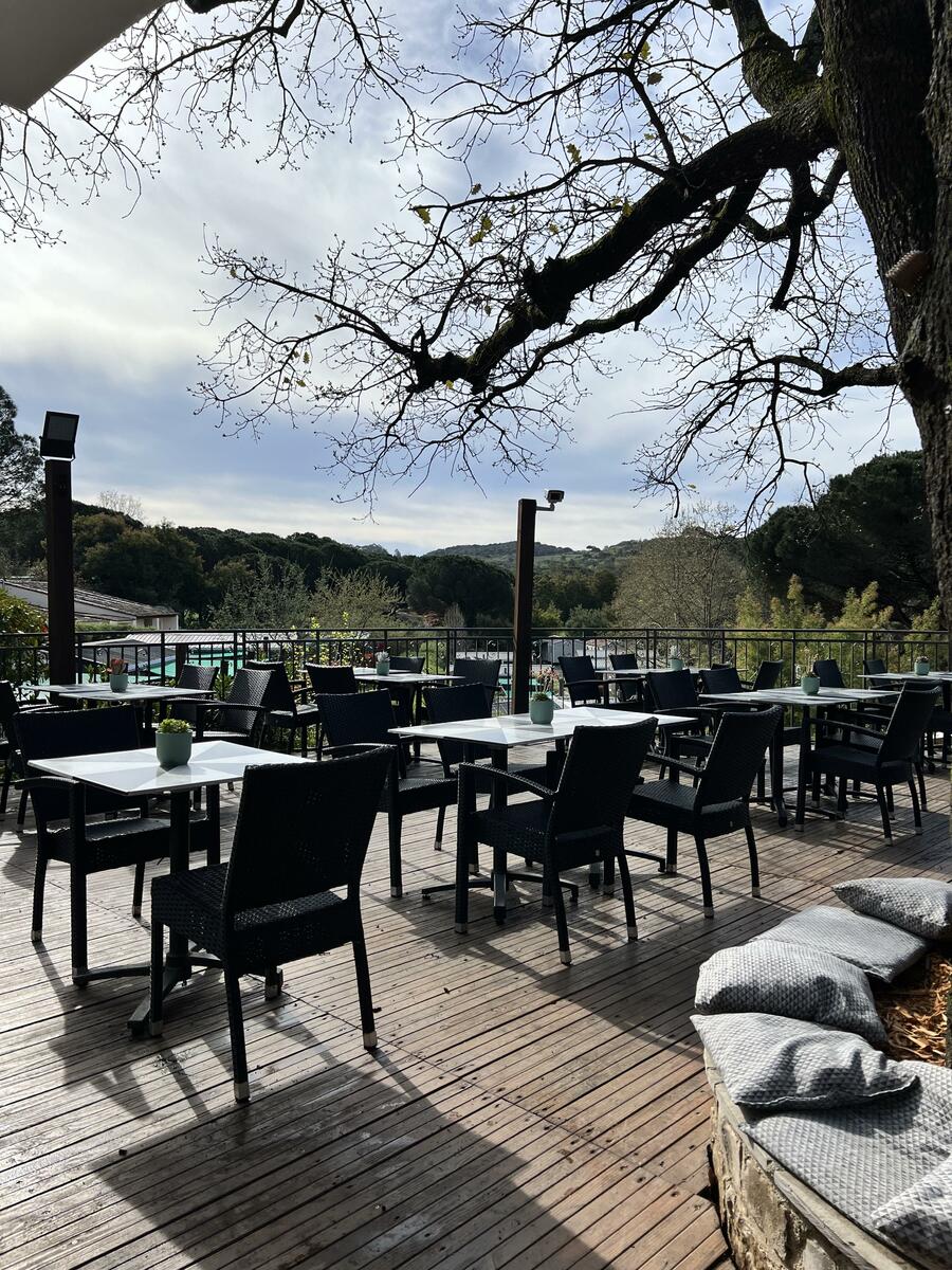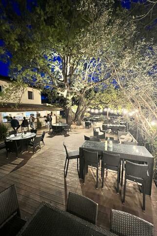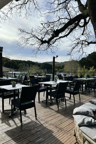 Venez profiter de notre belle terrasse protégée du soleil par son grand chêne, où l'on savoure une cuisine bistronomique locale et gourmande. Installés sur notre belle terrasse, vous pourrez savourer nos cocktails, avec une vue sur la pinède. Nous vous proposons une carte bistronomique et locale qui séduira les petits et les grands, mais aussi de la vente à emporter avec nos pizzas et nos poulets rôtis. Retrouvez nous chaque jour pour faire danser vos papilles grâce à nos plats mais aussi aux nombreuses soirées musicales. Et pour celles et ceux qui préfèrent «tirer ou pointer», nos planches à partager vous accompagneront jusqu'aux terrains de pétanque.