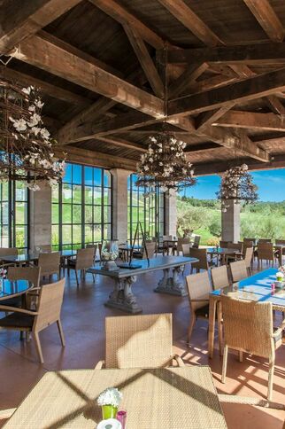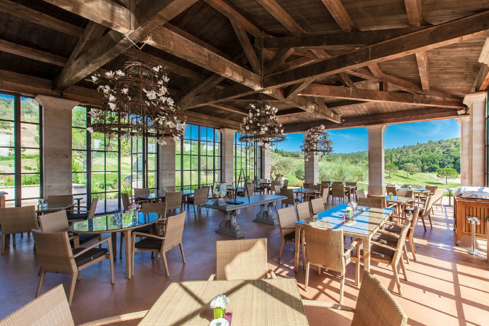 Le restaurant du Golf Country Club de Gassin vous accueille dans un cadre idyllique pour découvrir des plats très soignés dans la salle de l'orangerie.
