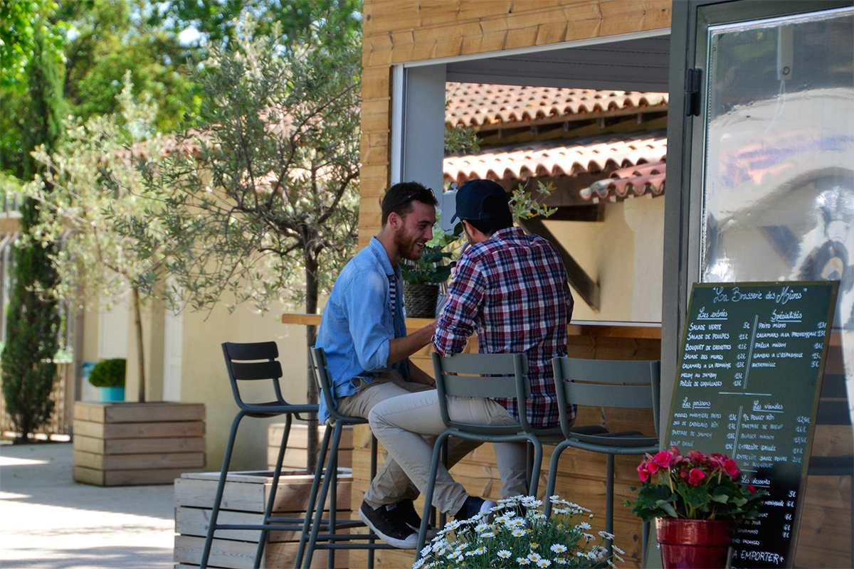 LA BRASSERIE est située au cœur du camping sous les pins centenaires.