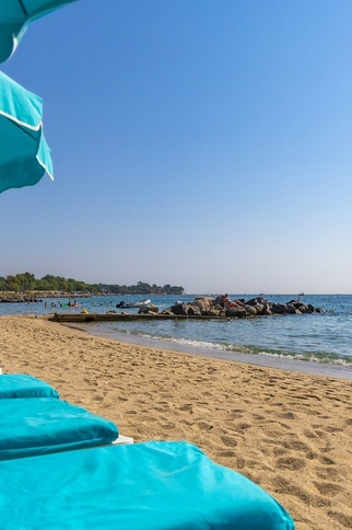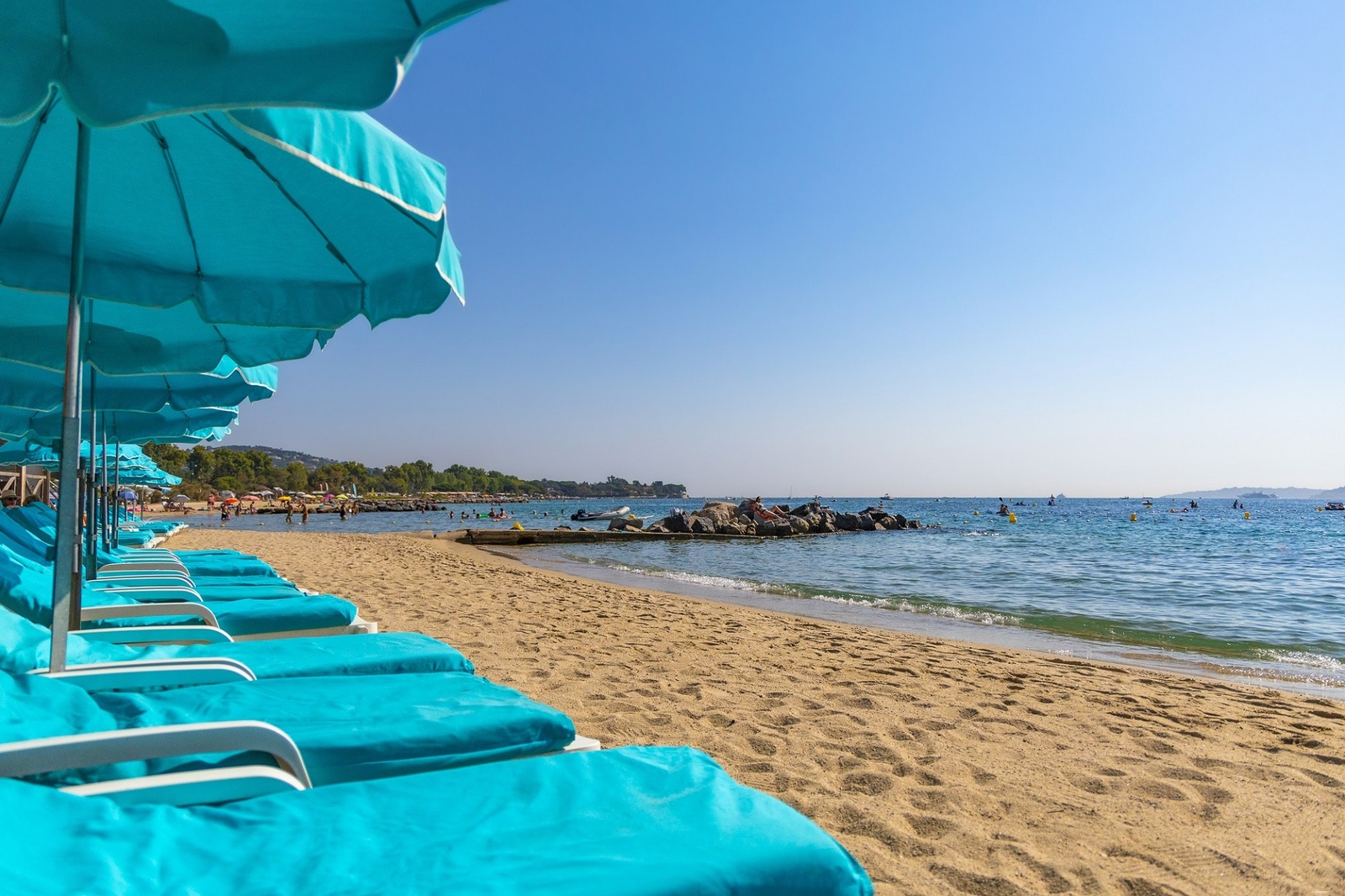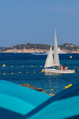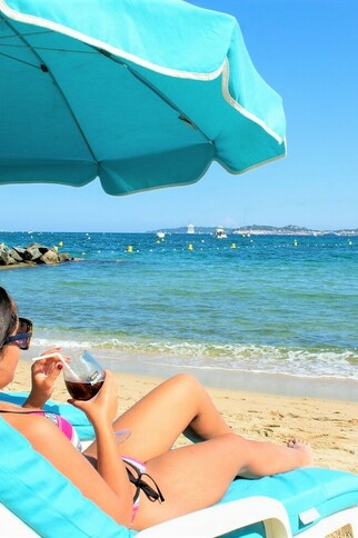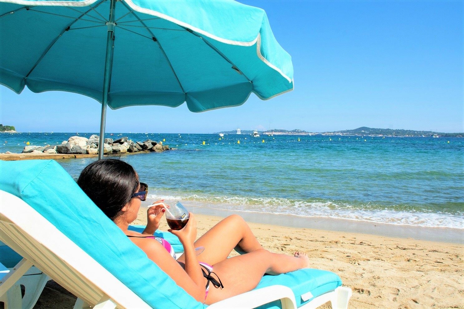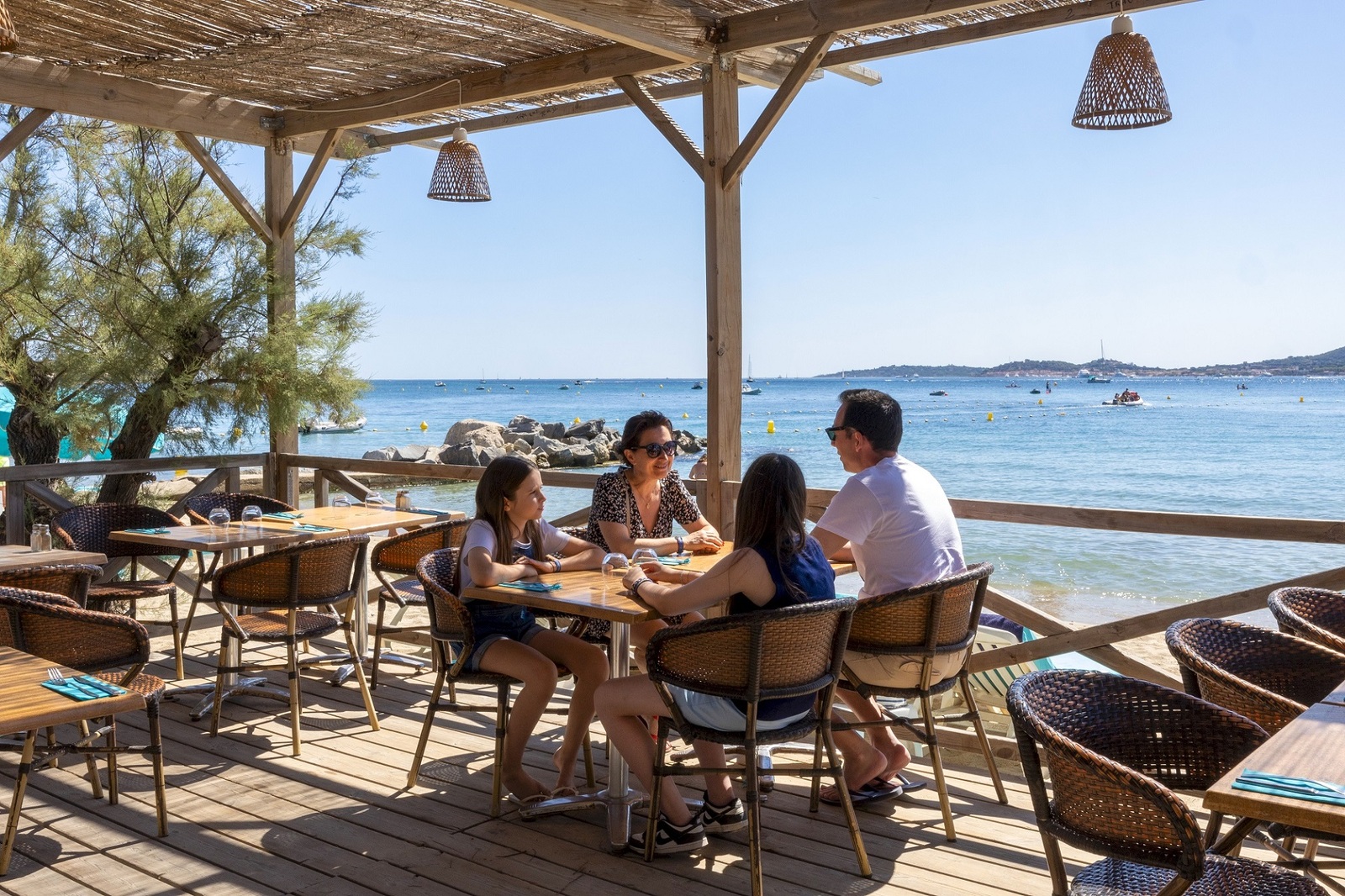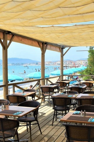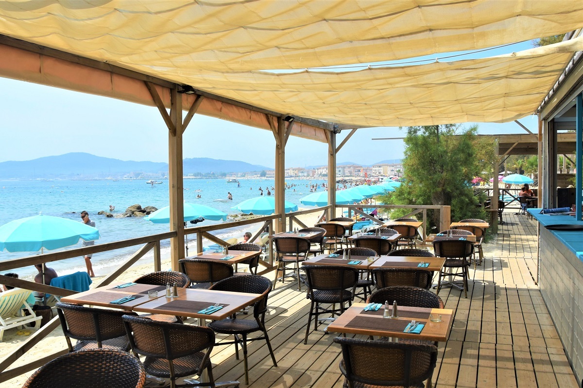 Location de matelas et déjeuner sur la plage en bord de mer de mai à septembre, face à Saint Tropez, à proximité de Port Grimaud. Ouvert également le soir pour dîner en haute saison.