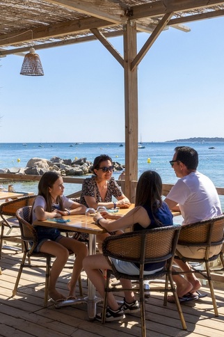 Accessible par le chemin de la Plage depuis la route du Littoral, le 6 Plage est une parenthèse calme et paisible sur les plages de Grimaud avec une vue magnifique sur tout le Golfe de Saint Tropez. Offrez-vous un véritable moment de détente confortablement installés sur nos matelas à l'ombre d'un parasol.Profitez de sa terrasse ombragée à deux pas du bord de l'eau pour déjeuner (mai à septembre) ou dîner (juillet et août) bercés par le ressac de la mer. Le Chef vous propose ses suggestions du jour ou sa carte avec des plats aux couleurs locales.