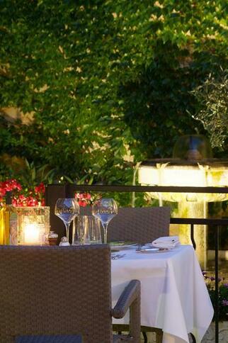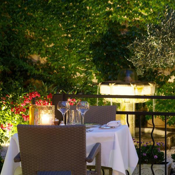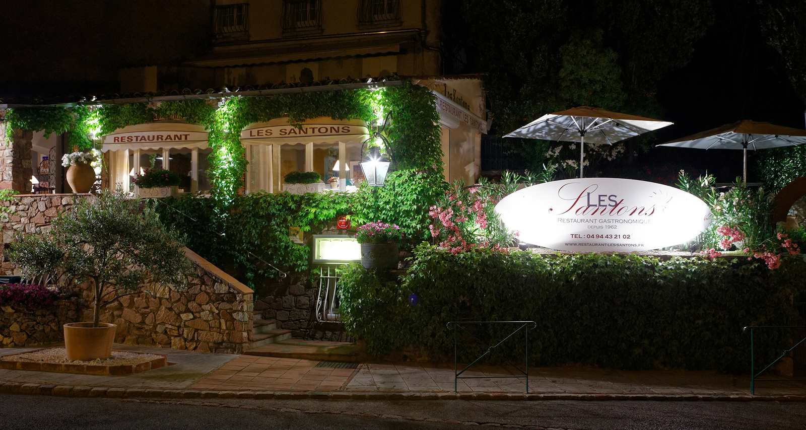 Dans le village provençal et médiéval de Grimaud, le restaurant gastronomique Les Santons est une véritable institution fondée en 1962 dans une authentique maison de maître provençale.