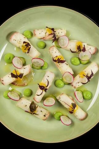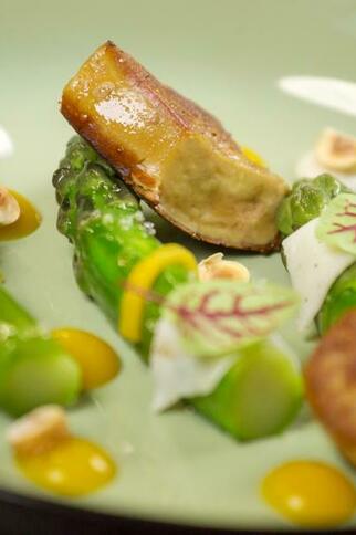 Entrée :produits évoluants avec la saison commes les asperges, les artichauts , les St jacques, le foie gras...