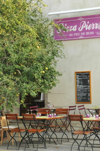 Pizza artisanale au feu de bois, sur place ou à emporter.