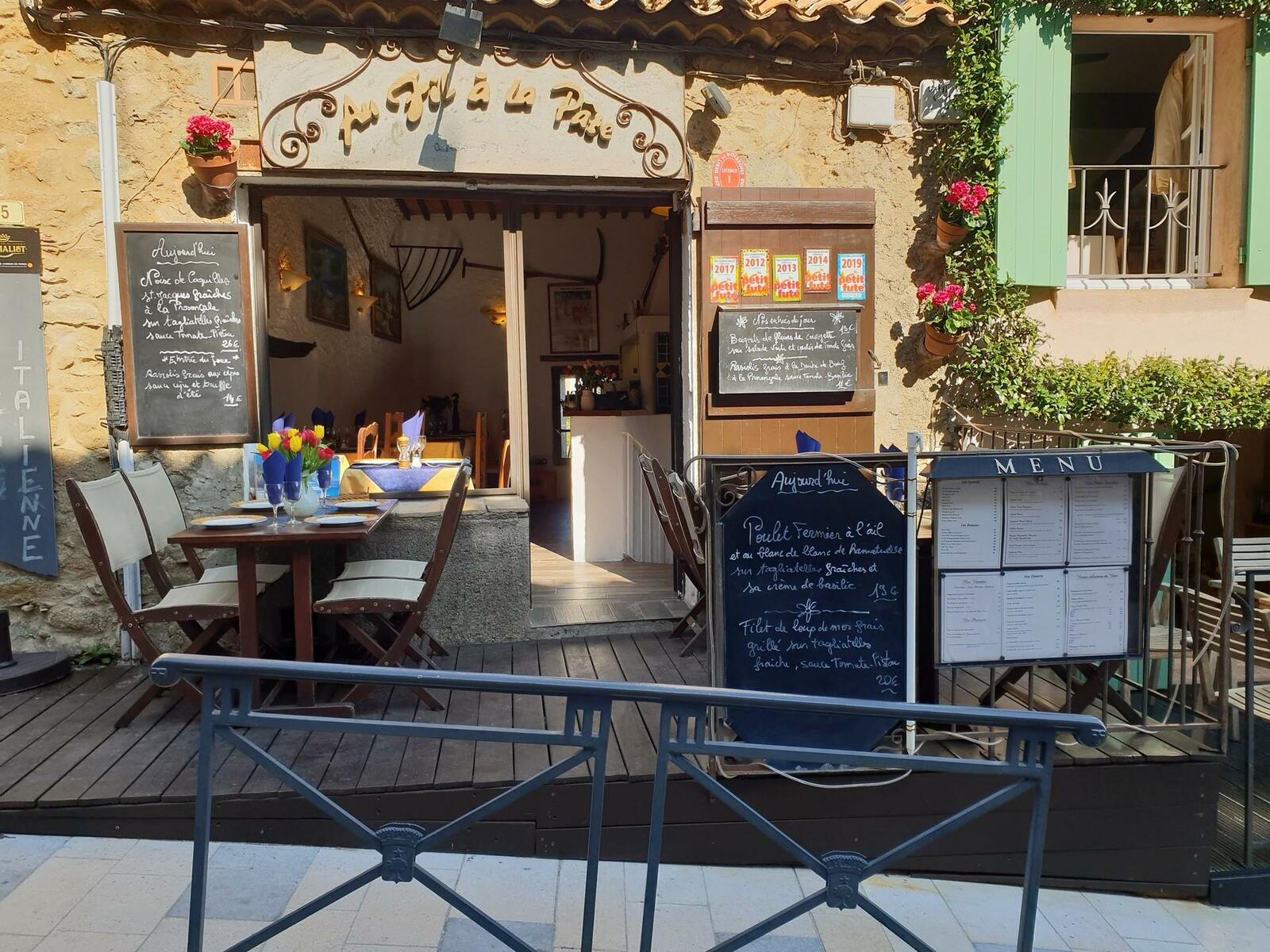 Service assuré à la sortie des Festivals (sur réservation). Cuisine ouverte sur salle. Spécialités pâtes fraîches. Raviolis frais. Cuisine provençale, produits frais selon le marché. beignets de fleurs de courgettes, raviolis cèpes et truffes.