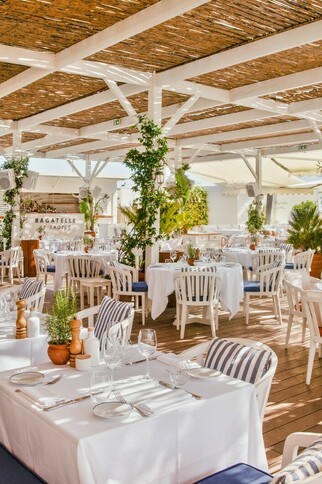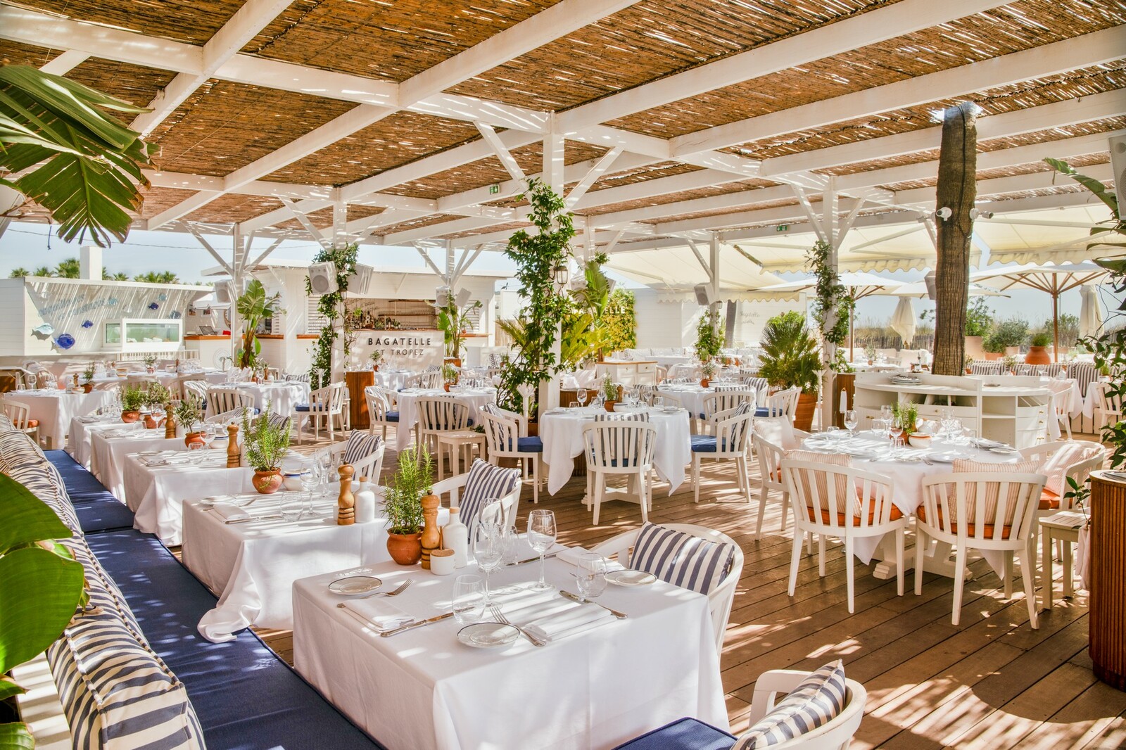 Situé sur l’emblématique plage de Pampelonne, le restaurant et beach club Bagatelle incarne l’art de vivre à la française dans