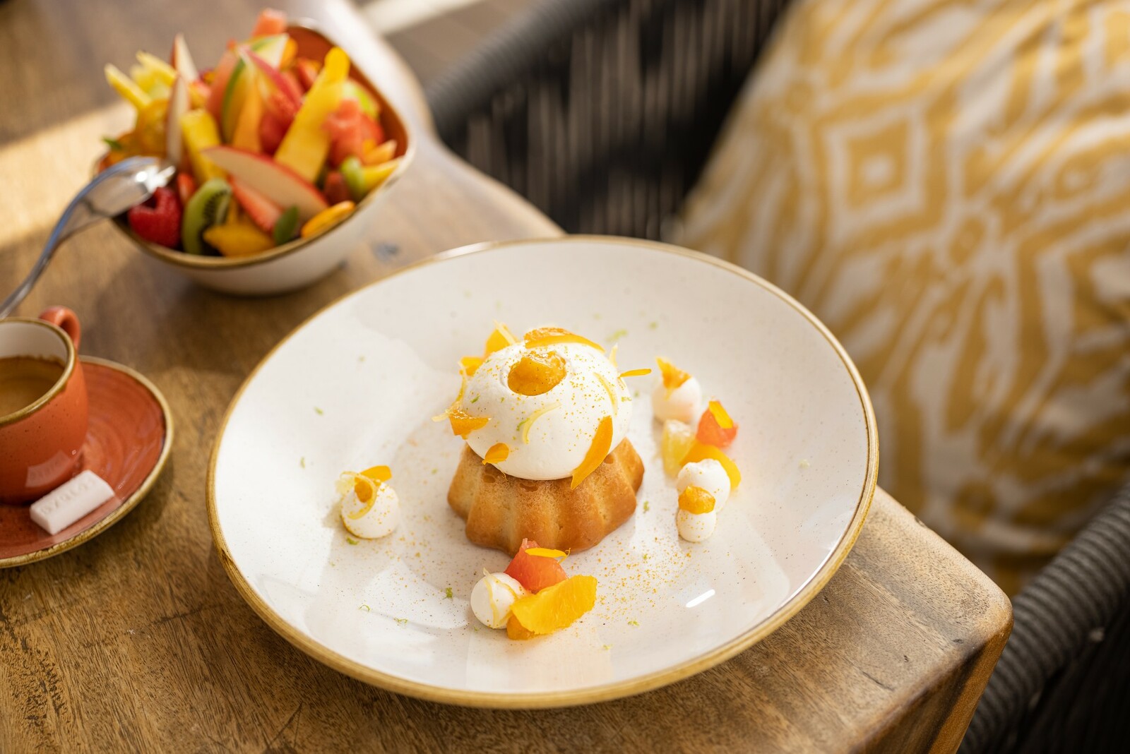 Côté restaurant, des créations légères et raffinées aux accents méditerranéens. On privilégie ici la qualité des produits locaux, ceux cultivés avec passion auprès des producteurs locaux et ceux issus du potager du Byblos.