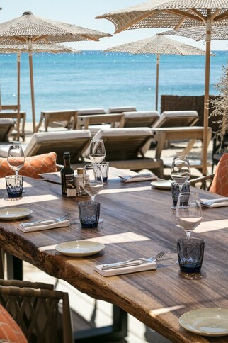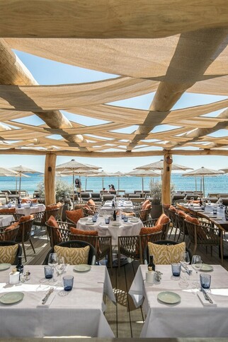 Une plage élégante et détendue qui est le prolongement du Byblos de Saint-Tropez.Son décor contemporain s’inspire du monde marin et de la nature dans le plus grand respect de l’environnement. Les terrasses du restaurant recouvertes d’ombrières rappellent les voiles majestueuses des plus beaux bateaux de la côte.
