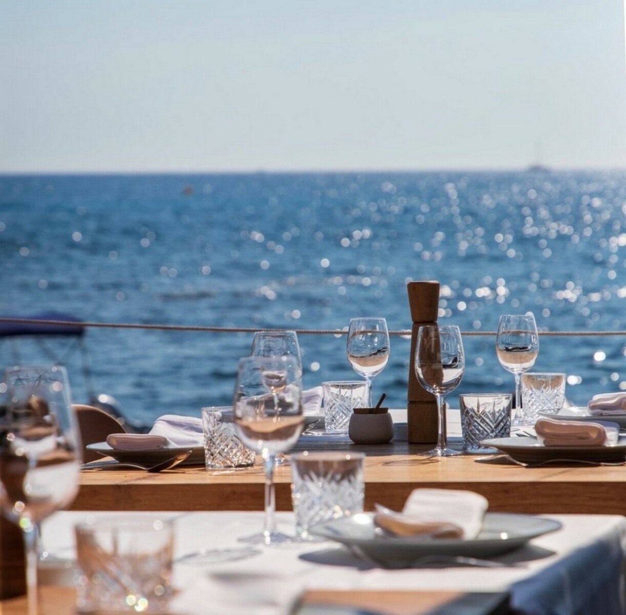 Chez Camille est établi en bord de plage, dans la crique de Bonne Terrasse à proximité de Ramatuelle et Saint-Tropez.Produits frais : producteurs locaux.