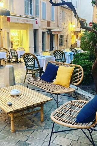 Vous serez accueilli dans une ambiance détendue et chaleureuse, que vous choisissiez de vous installer sur la terrasse ensoleillée — idéale pour profiter de l’effervescence tropézienne — ou bien à l’intérieur, au comptoir ou en salle. L’atmosphère y reste conviviale.