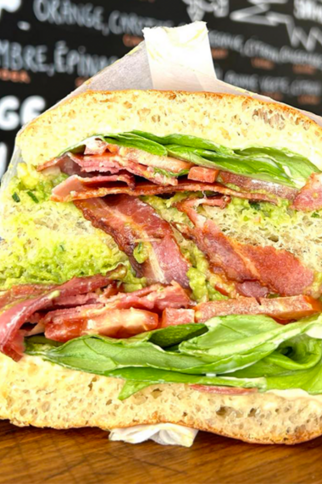 On y retrouve des jus bio pressés à froid, une cuisine saine et fait-maison (option vegan) et du café de spécialité.