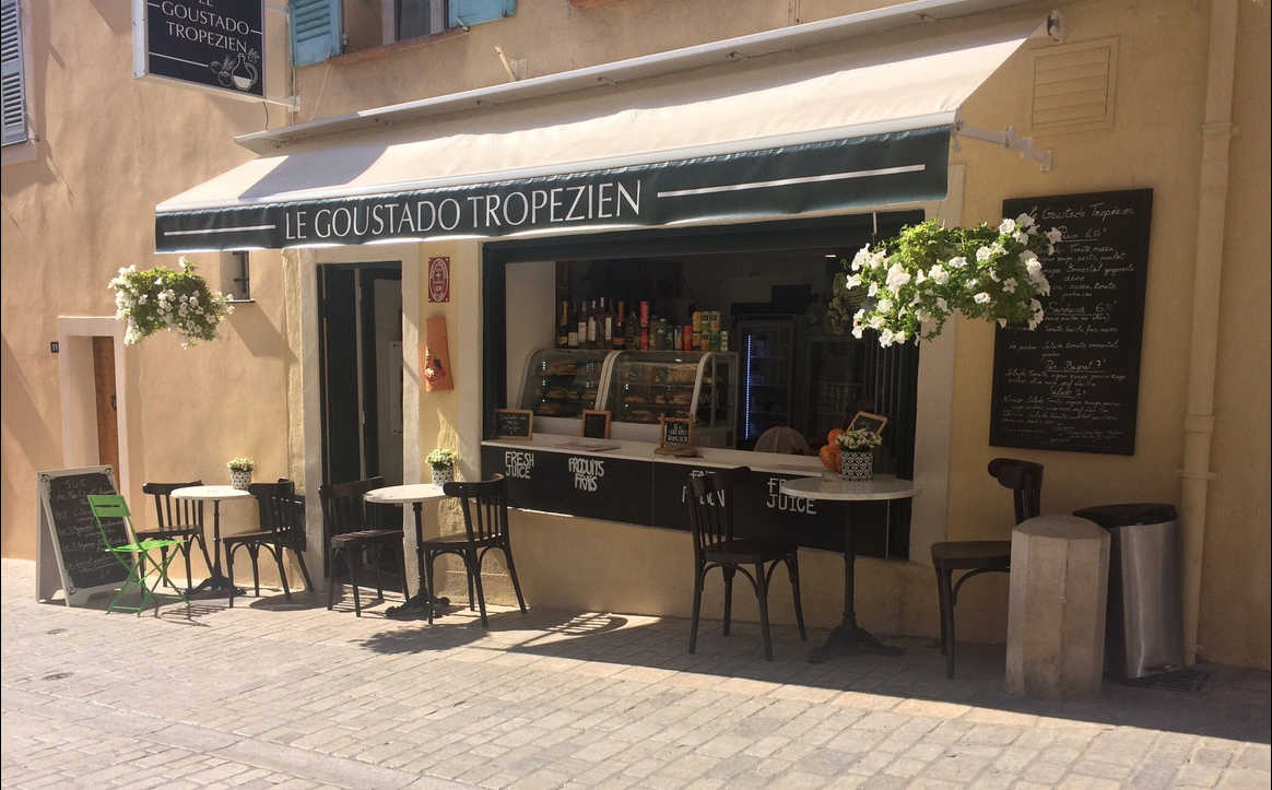 Le Goustado Tropezien vous propose une cuisine de produits frais et faits maison. Situé dans les petites ruelles du vieux village, à 1 minute de la citadelle, à emporter ou sur place, service continu du petit-déjeuner au dîner. Vous dégusterez des sandwiches et paninis au pain frais ainsi que notre incontournable bagnat toasté.Plat du jour, quiches maison, tartes, gâteaux, jus de fruits frais pressés, apéro. Tout cela dans une ambiance chaleureuse, familiale et décontractée.